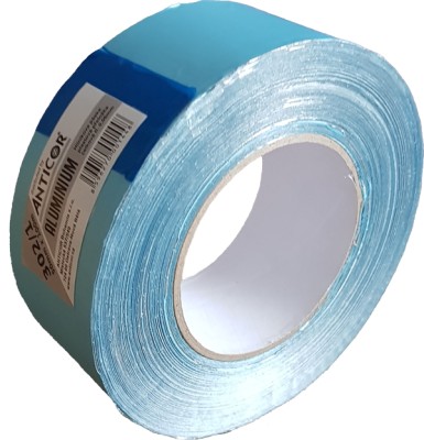 Hliníková páska samolepicí z měkké hliníkové fólie, lepidlo akrylátové lepidlo, přeložka je z modré PE fólie. Tyto hliníkové pásky mají opačný návin s přeložkou nahoru.